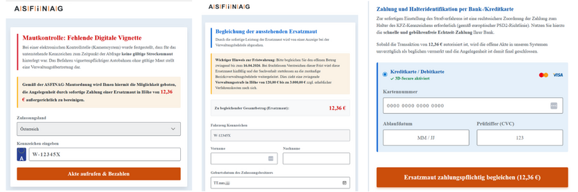 E-Mail: Die ASFINAG versendet keine E-Mail-Nachrichten, wenn jemand ohne Vignette auf Österreichs Autobahnen oder Schnellstraßen erwischt wurde. Die Aufforderung zur Zahlung der Ersatzmaut wird postalisch zugestellt.