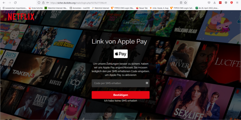 Geben Sie keine TAN oder SMS-Bestätigungs-Codes in Website-Masken ein! Netflix, Disney+ oder andere Dienste, fragen nicht nach TAN-Codes ihrer Bank oder Kreditkarte!